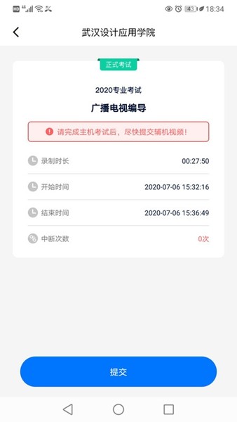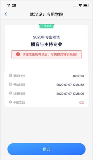 辅助录制开始后请不要退出页面,否则录制中断。如非人为中断,请尽快恢复录制,以免作舞弊处理